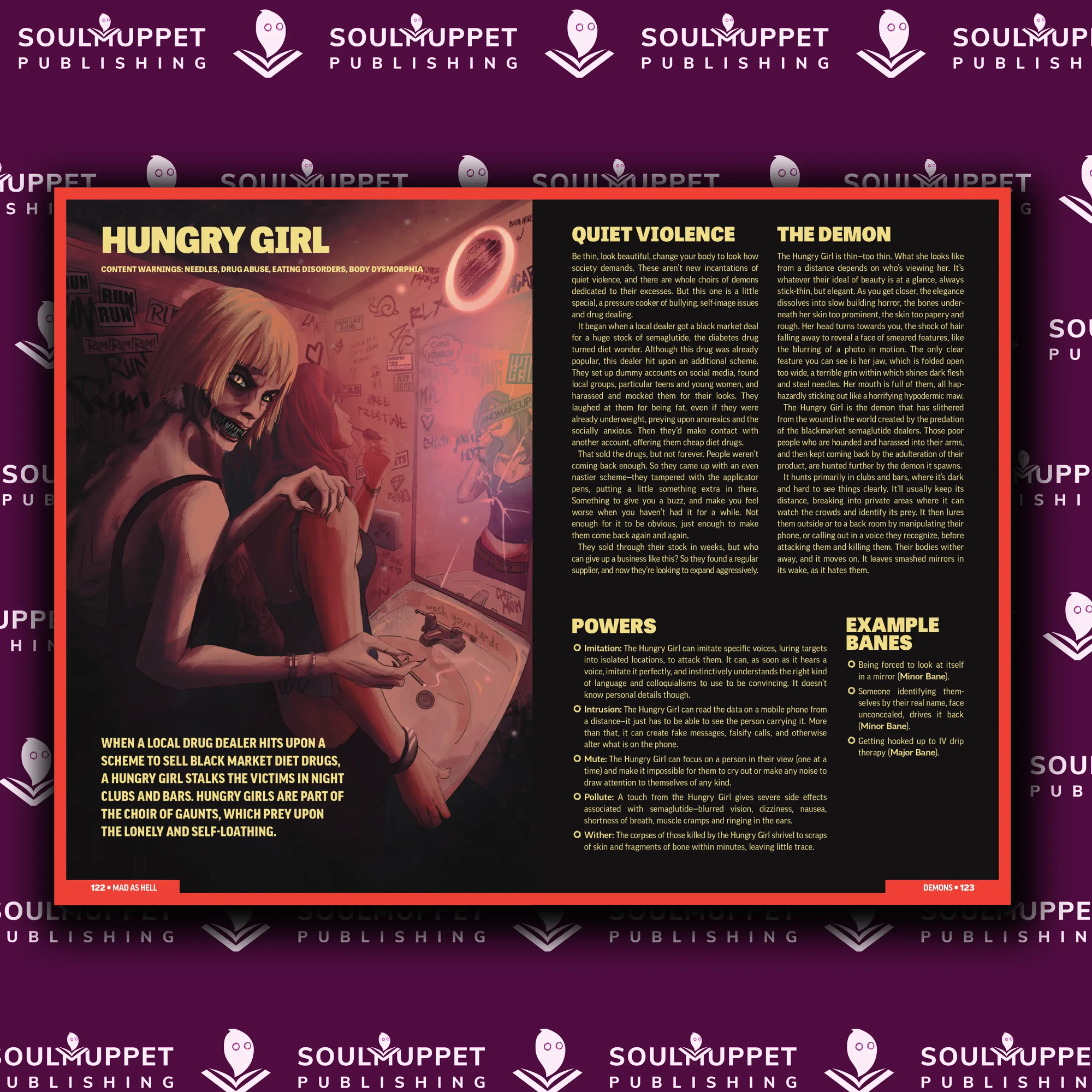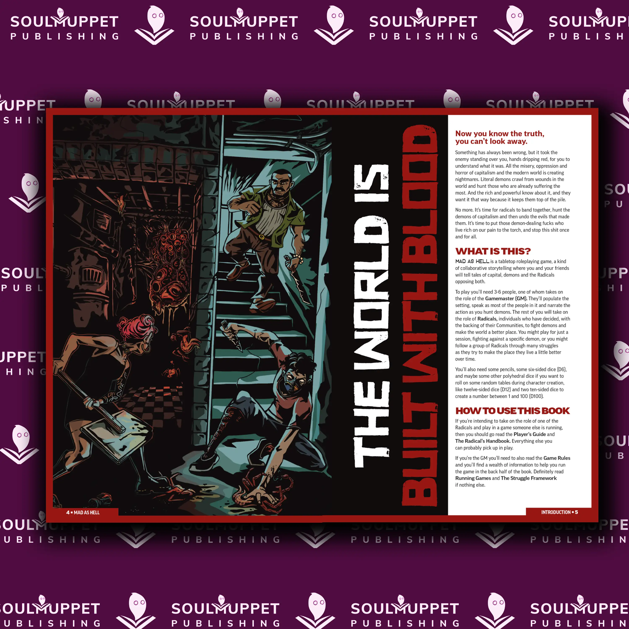 Mad As Hell is a new anti-capitalist demonhunting TTRPG by SoulMuppet Publishing, written by Evie Moriarty with illustrations by Per Janke, Scrap Princess and Alex Eckman-Lawn.